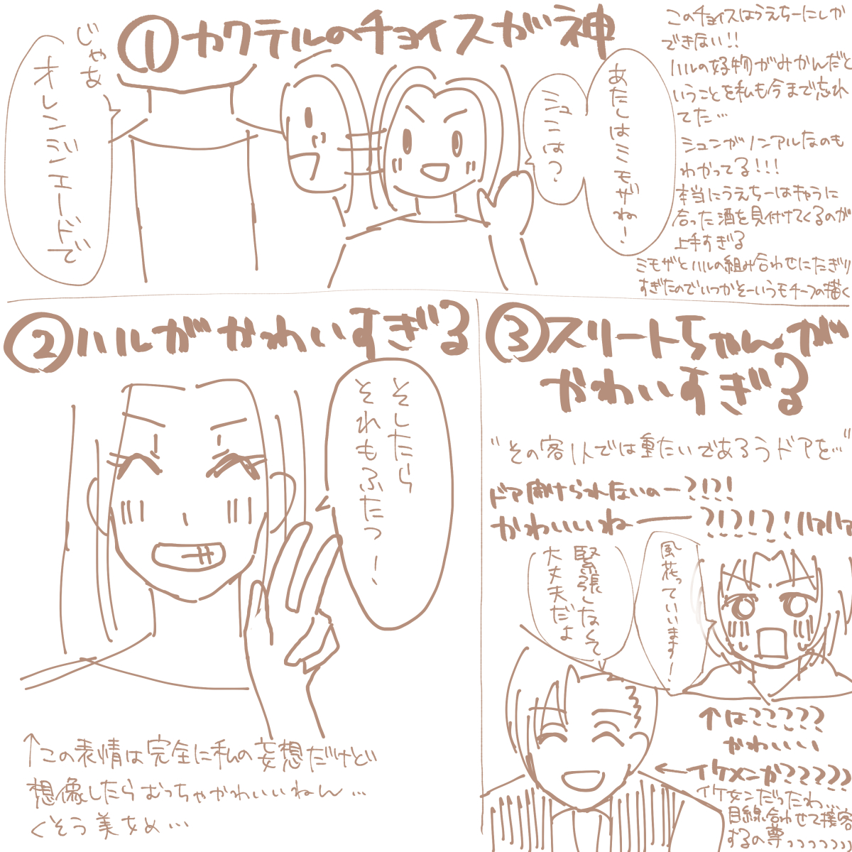 [PR] ×[PR]上記の広告は3ヶ月以上新規記事投稿のないブログに表示されています。新しい記事を書く事で広告が消えます。 【C4】神小説の感想 うえうえ.JPが書いてくれた神小説(こちらの4〜8話)が尊すぎて思いのままに描き殴った感想です。 PR 【メルトピア】2019年ソウ誕生日 10/23はソウの誕生日です。 おめでとう! 【メルトピア】3話 トーンの貼り方を覚えたので急にモノクロになりました。 【甘どら】アキと寄り道 「…ね、もう少し、お喋りしよっか」 【甘どら】ショートヘアハル 以前描いたショートヘアのハルをリメイク~ 少しは上達してますかね… 【甘どら】レイ輪 改元後の初イラストだったので、ワをつくるレイセンパイを描きました。 【C4】グノームちゃんとアキの雑談 うえうえ.jp宅のグノームちゃんをお借りしました。 元ネタはうえうえ.jpのツイートです。 カテゴリを絵にするか漫画にするか迷ったのですが、1コマ漫画ということで漫画にしました。 【C4】スリートちゃんとシュンの出会い うえうえ.jp宅のスリートちゃんをお借りしました。 【ベビカス】新アルバム「ママ・レード」キービジュアル 初めて対称定規というのを使ったのですが、めちゃくちゃ楽しかったです。 トレス素材をお借りしています。 【C4】アサヒのCS